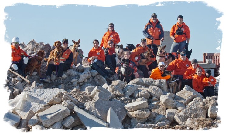 areas consist of collapsed structures. Here the dogs are searching for simulated buried victims on